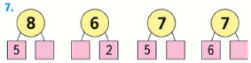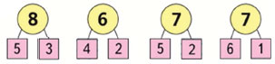 ![]() | 8 = 5 + 3 8 - 3 = | ![]() | 7 = 4 + 3 7 - 3 = |
