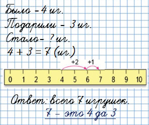 Ей подарили ещё 3 такие же игрушки. Поставь вопрос и реши задачу.