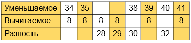 | 80 - 7 = (70 + 10) - 7 = 70 + (10 - 7) = 70 + 3 = 73 Проверка 73 + 7 = 70 + 3 + 7 = 70 + 10 = 80 | 78 - 40 = (70 + 8) - 40 = (70 - 40) + 8 = 30 + 8 = 38 Проверка 38 + 40 = (30 + 8) + 40 = 30 + 40 + 8 = 70 + 8 = 78 |