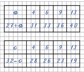| 27 + 4 = 27 + 3 + 1 = 30 + 1 = 31 | 32 - 4 = 32 - 2 - 2 = 30 - 2 = 28 |
