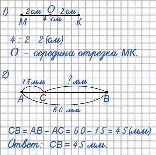 16. 1) Начерти отрезок МК длиной 4 см. Отметь его середину.
