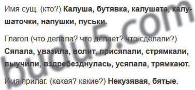 Прочитайте необычное произведение «Пуськи бятые». Попробуйте определить хоть одну часть речи в тексте, где нет ни одного знакомого вам слова. Эти слова придумала Л. Петрушевская.