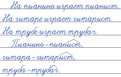 На пианино играет ... . На гитаре играет ... . На трубе играет ... .