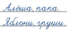 Записанные слова служат названиями предметов. Они отвечают на вопросы кто? (Алёша, папа) и что? (яблони и груши).
