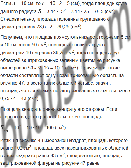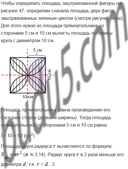 Вычислите площадь заштрихованной фигуры, изображенной на рисунке 47.