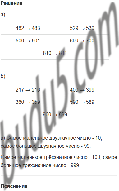 в) Назови самое маленькое и самое большое двузначное число, трёхзначное число.