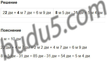 | 2 * дм + * м 7 дм = 6 м 9 дм | * м 5 дм - 3 * дм = 5 м 4 дм |