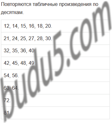 Сколько табличных произведений в каждом десятке? Выучи их.