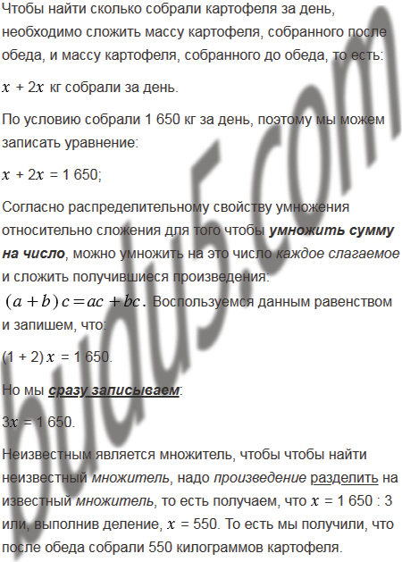На уборке картофеля собрали 1 650 кг за день. После обеда собрали в 2 раза меньше, чем до обеда. Сколько картофеля собрали после обеда?