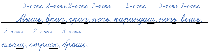 Мыши, врачи, грачи, печи, карандаши, ночи, вещи, плащи, стрижи, бро́ши.
