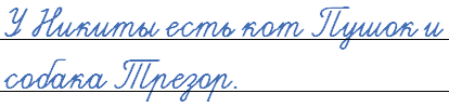 У (Н, н)икиты есть кот (П, п)ушок и собака (Т, т)резор. Собака и кошка живут дружно. Они любят играть с (Н, н)икитой.