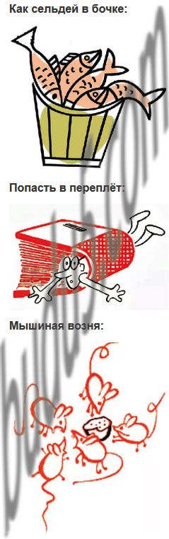 Как сельдей в бочке, втирать очки, окунуться в работу, на нём лица нет, попасть в переплёт, стереть с лица земли, на воре шапка горит, кипеть от негодования, мышиная возня.