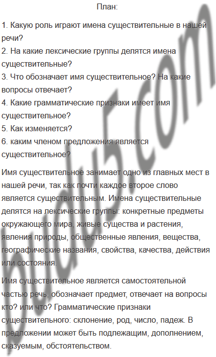 4. Следовательно, имя существительное — самостоятельная часть речи, которая: а) обозначает предмет в широком смысле слова и отвечает на вопрос кто? или ч т о?; б) имеет грамматические признаки: склонение, род, число, падеж и др.; в) изменяется по падежам и числам; г) в предложении обычно является подлежащим, дополнением или обстоятельством.