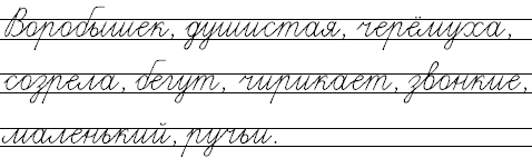 Составим предложения с данными словами. Маленький воробышек радостно чирикает, купаясь в лучах солнца. Созрела душистая черёмуха и наполнила ароматом всё вокруг. Звонкие ручьи бегут по дорожкам.