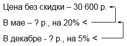 Холодильник стоил 30 600 р. В мае цена холодильника была снижена на 20%, а в декабре - еще на 5%. Какой стала стоимость холодильника в декабре?