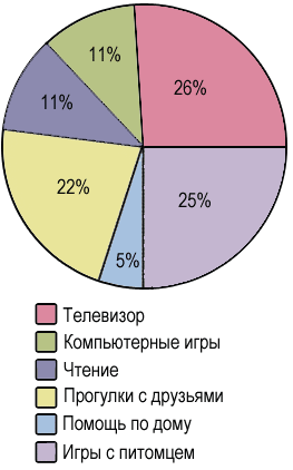 1) На круговой диаграмме (рис. 1.22) показано использование свободного времени за неделю шестиклассником Димой. Определите: