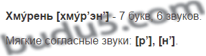 2. Хмурень. Сравни количество звуков и букв в слове. Назови мягкие согласные звуки.