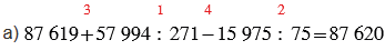 а) 87 619 + 57 994 : 271 - 15 975 : 75;