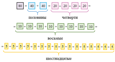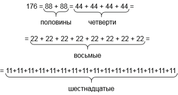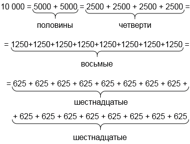 Числа 32, 176, 10 000 представьте в виде суммы их половин, четвертей, восьмых, шестнадцатых.